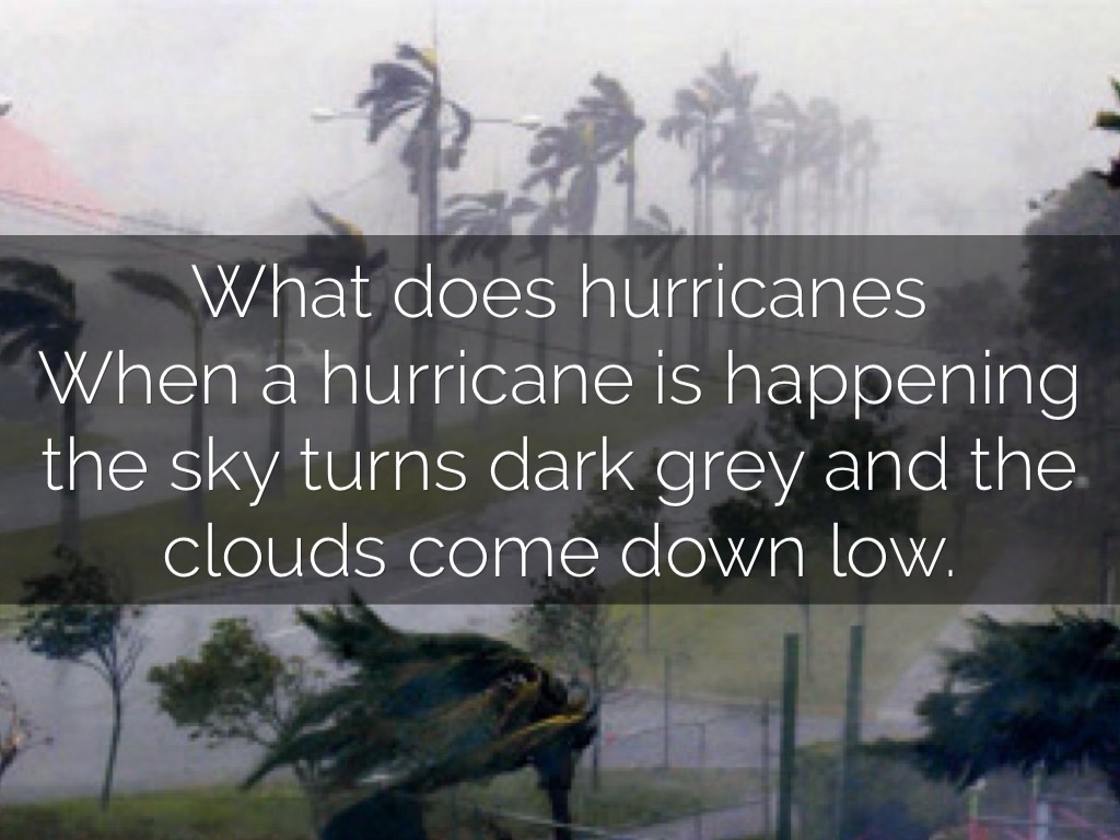 When a hurricane is happening the sky turns dark grey and the clouds come down low.