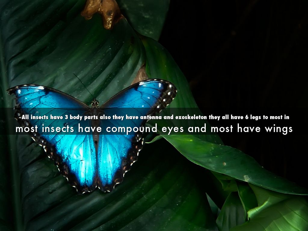 ~All insects have 3 body parts, antenna ,exoskeleton , 6 legs to most in