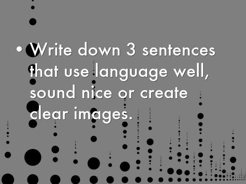 Write down 3 sentences that use language well, sound nice or create clear images.