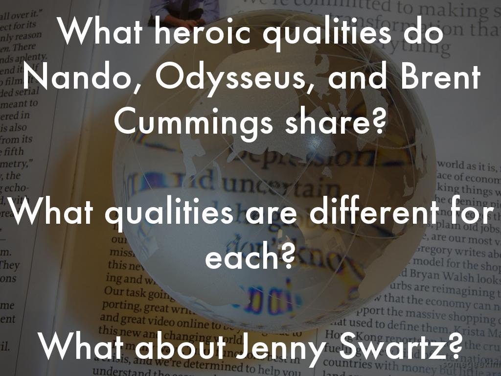 What heroic qualities do Nando, Odysseus, and Brent Cummings share?