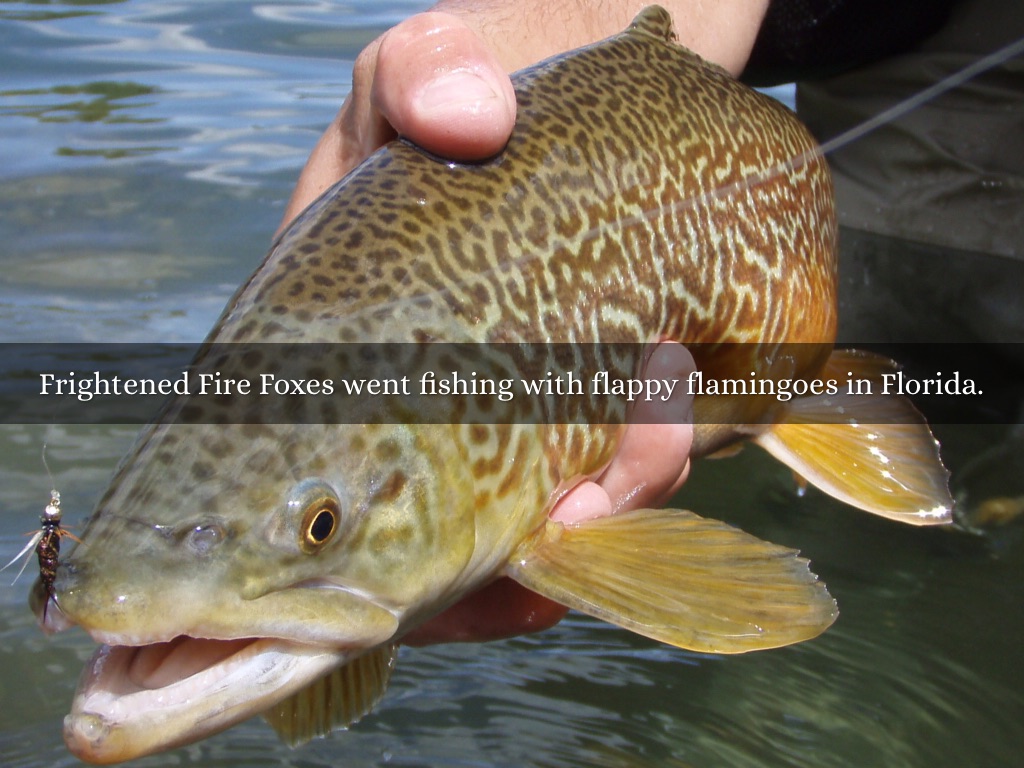 Frightened Fire Foxes went fishing with flappy flamingoes in Florida.