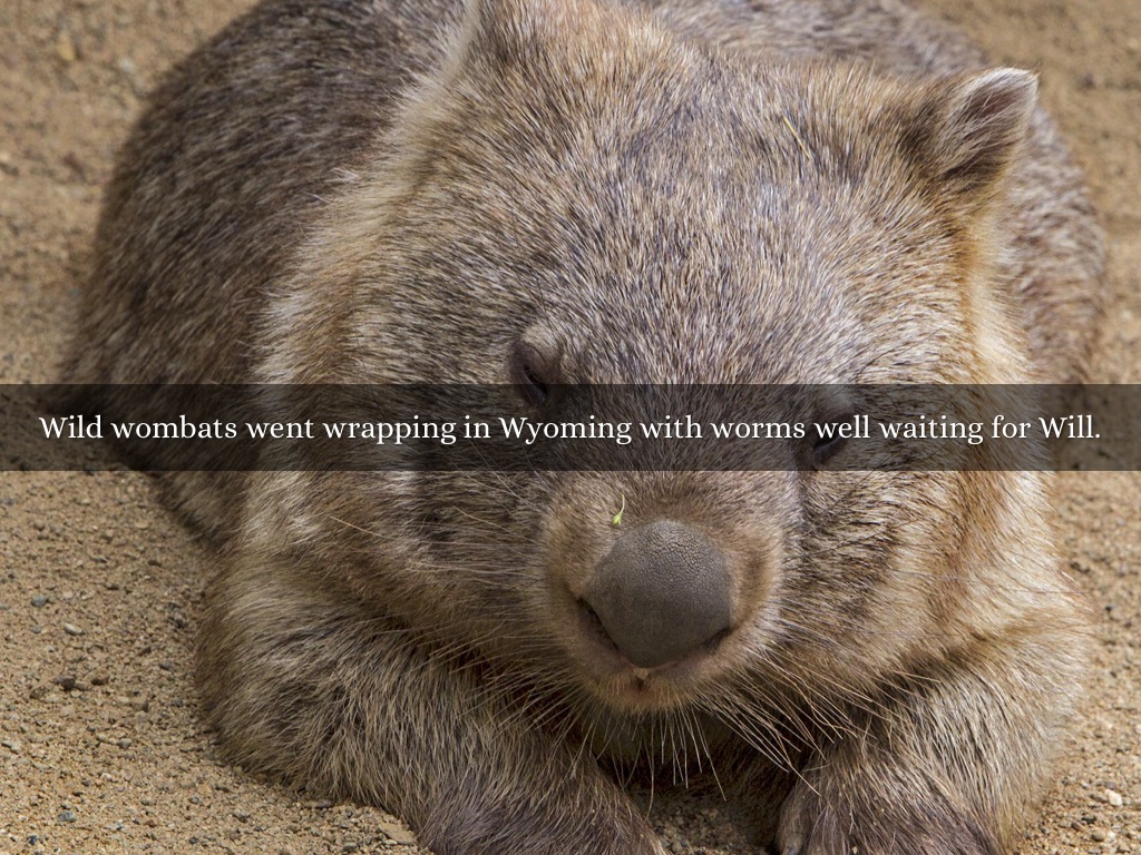 Wild wombats went wrapping in Wyoming with worms well waiting for Will.