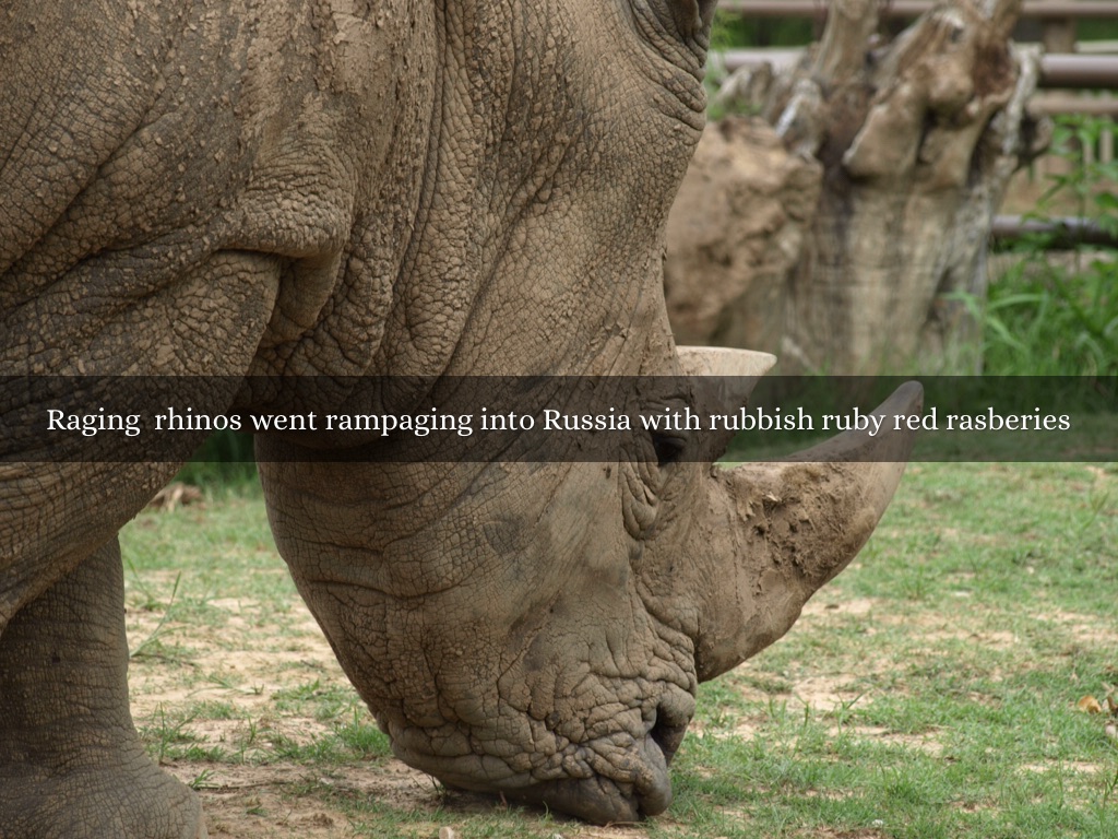 Raging rhinos went rampaging into Russia with rubbish ruby red rasberies