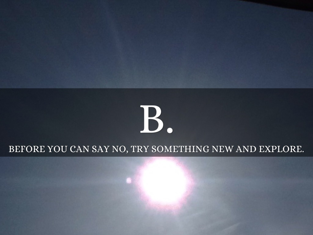 BEFORE YOU CAN SAY NO, TRY SOMETHING NEW AND EXPLORE.