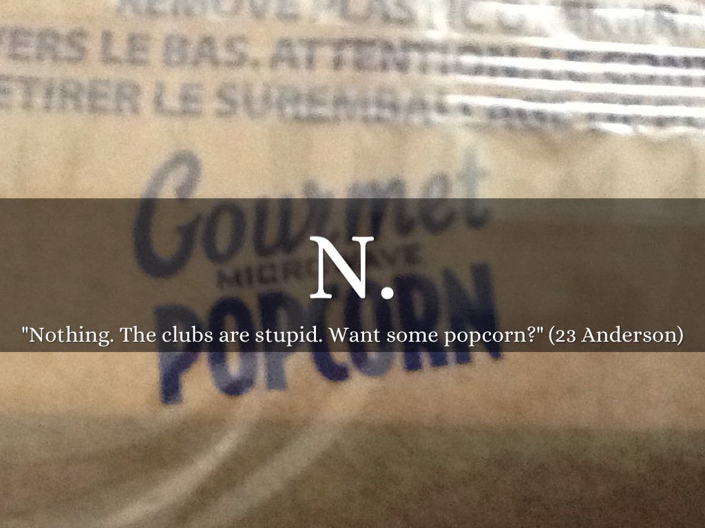 "Nothing. The clubs are stupid. Want some popcorn?" (23 Anderson)