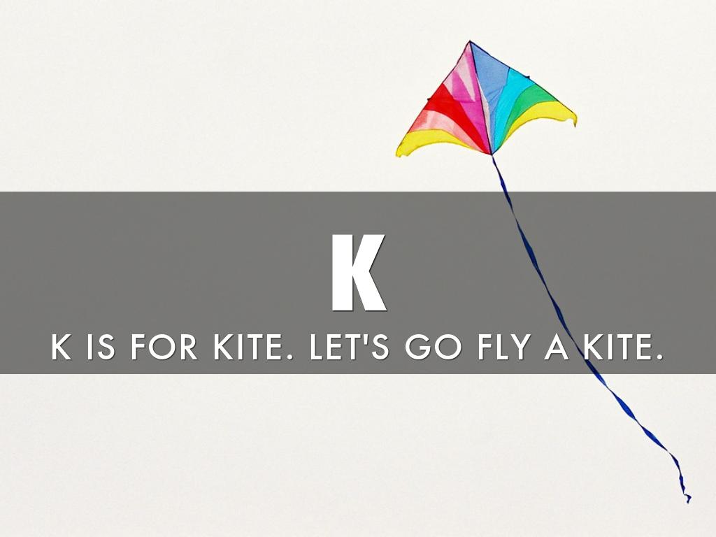 K IS FOR KITE. LET'S GO FLY A KITE.
