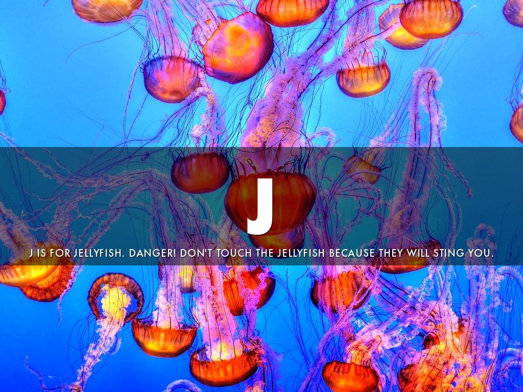 J IS FOR JELLYFISH. DANGER! DON'T TOUCH THE JELLYFISH BECAUSE THEY WILL STING YOU.