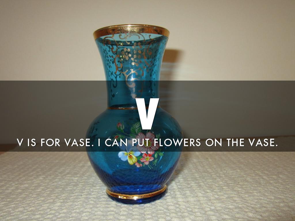 V IS FOR VASE. I CAN PUT FLOWERS ON THE VASE.