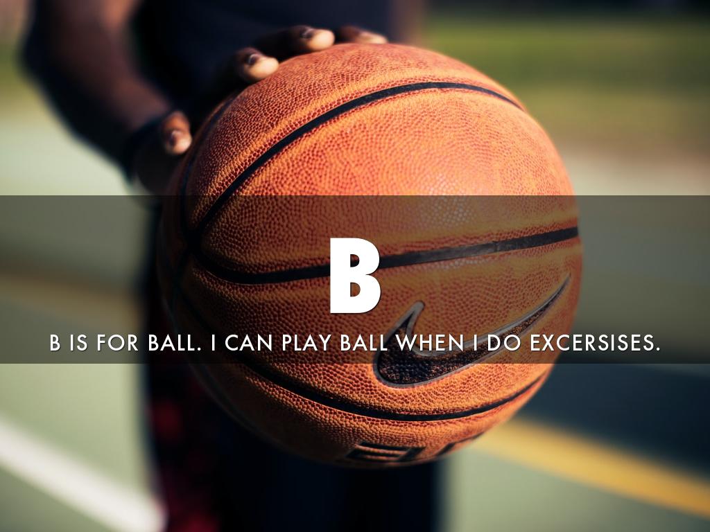 B IS FOR BALL. I CAN PLAY BALL WHEN I DO EXCERSISES.