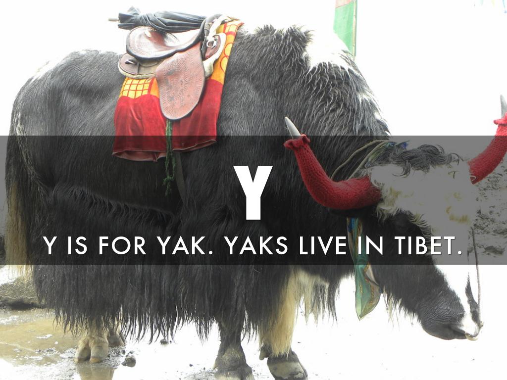 Y IS FOR YAK. YAKS LIVE IN TIBET.