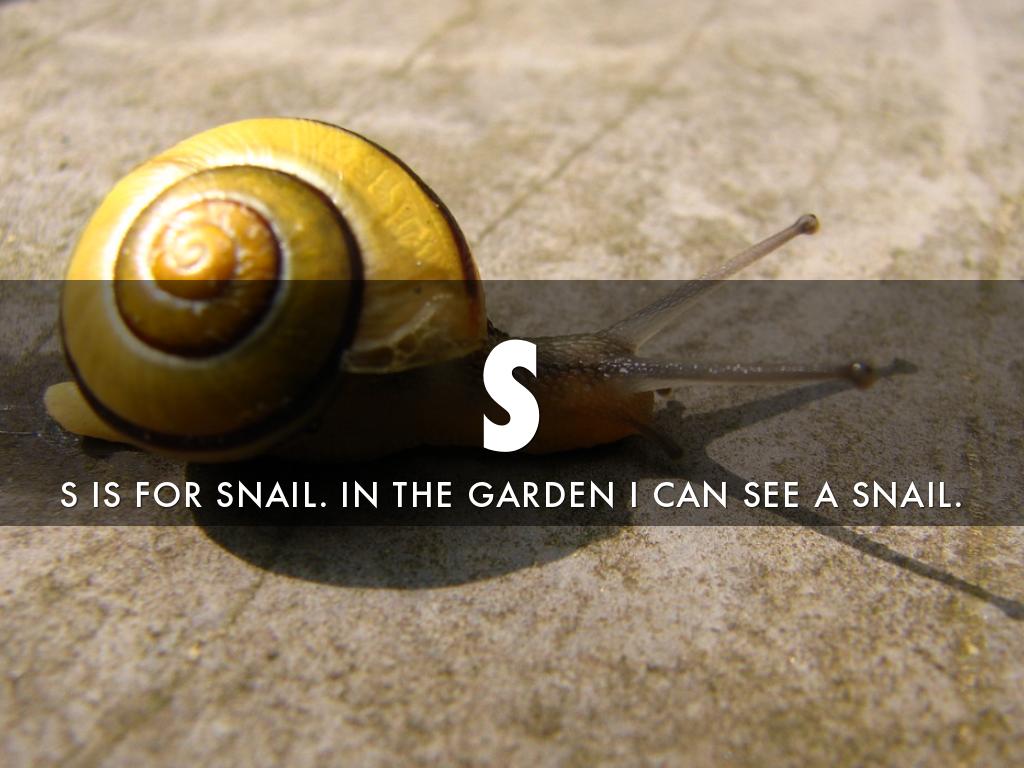 S IS FOR SNAIL. IN THE GARDEN I CAN SEE A SNAIL.