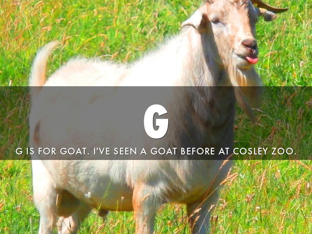 G IS FOR GOAT. I'VE SEEN A GOAT BEFORE AT COSLEY ZOO.