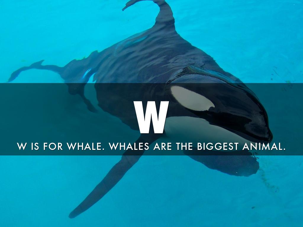 W IS FOR WHALE. WHALES ARE THE BIGGEST ANIMAL.