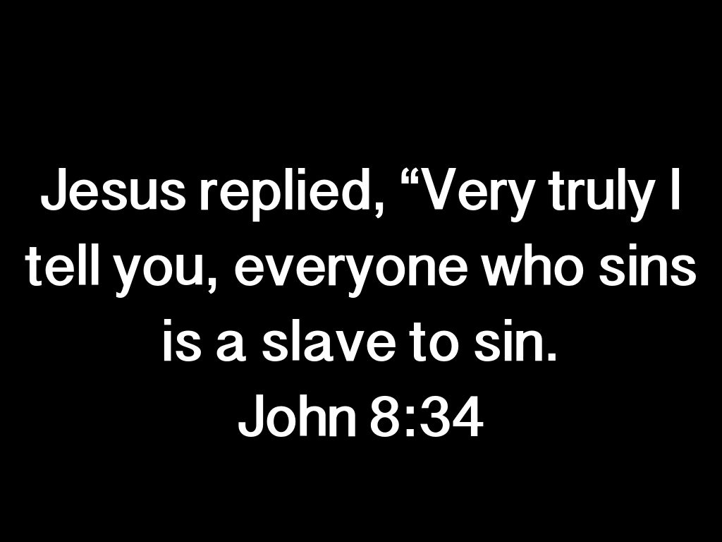 Jesus replied, “Very truly I tell you, everyone who sins is a slave to sin.