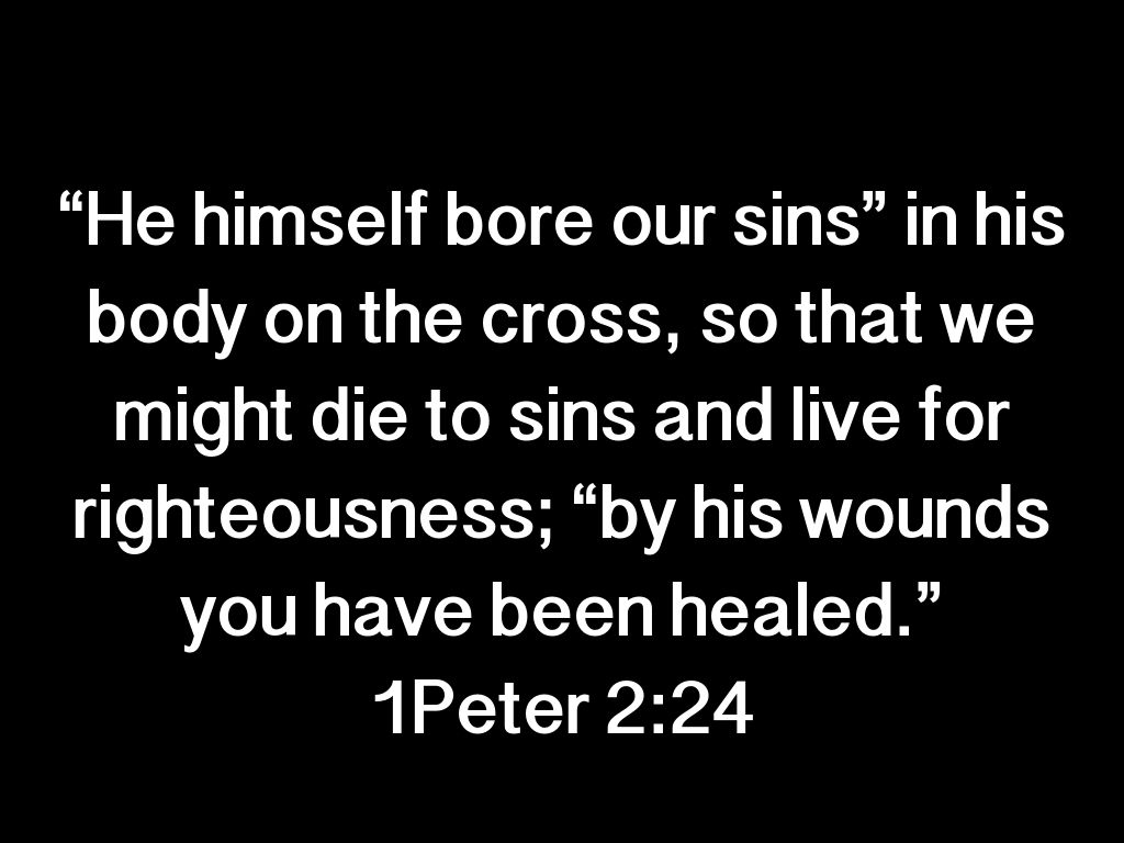 “He himself bore our sins” in his body on the cross, so that we might die to sins and live for righteousness; “by his wounds you have been healed.”