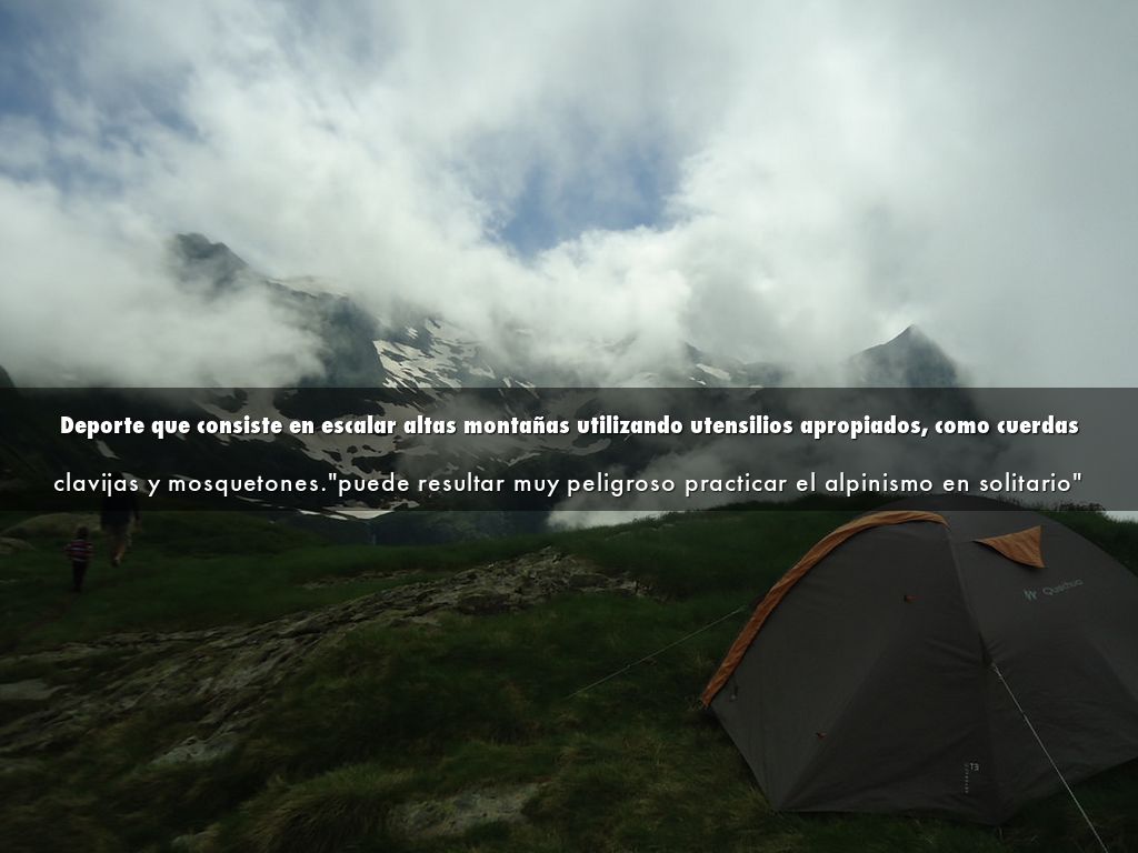 Deporte que consiste en escalar altas montañas utilizando utensilios apropiados, como cuerdas