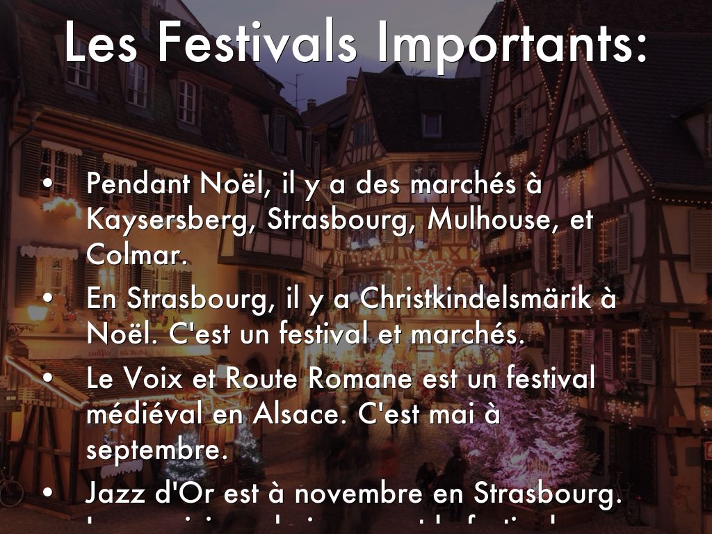 En Strasbourg, il y a Christkindelsmärik à Noël. C'est un festival et marchés.
