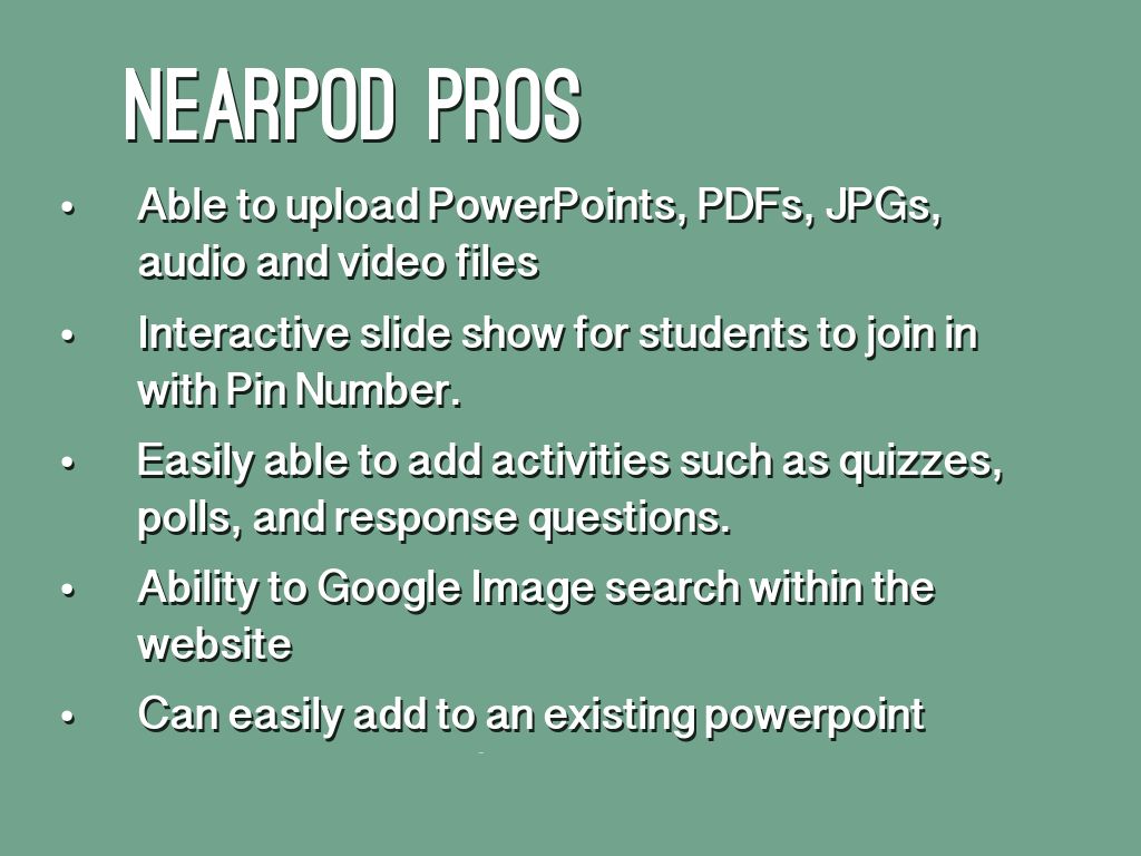 Able to upload PowerPoints, PDFs, JPGs, audio and video files
