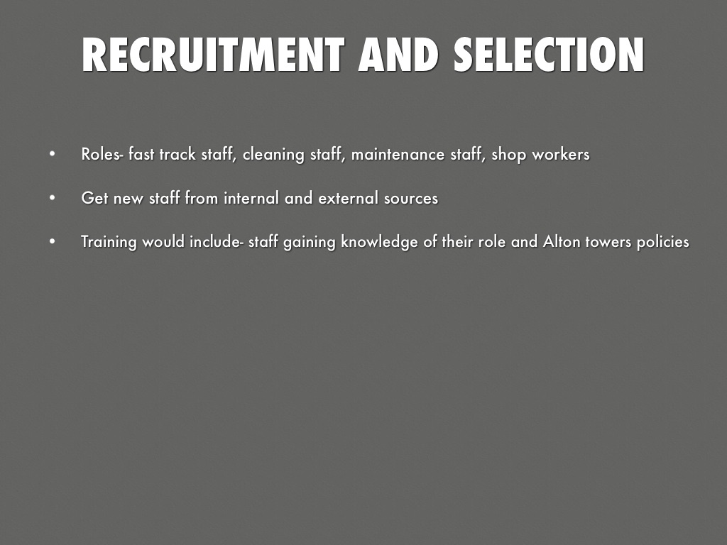 Training would include- staff gaining knowledge of their role and Alton towers policies