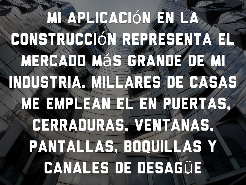 mi aplicación en la construcción representa el mercado más grande de mi industria. Millares de casas me emplean el en puertas, cerraduras, ventanas, pantallas, boquillas y canales de desagüe