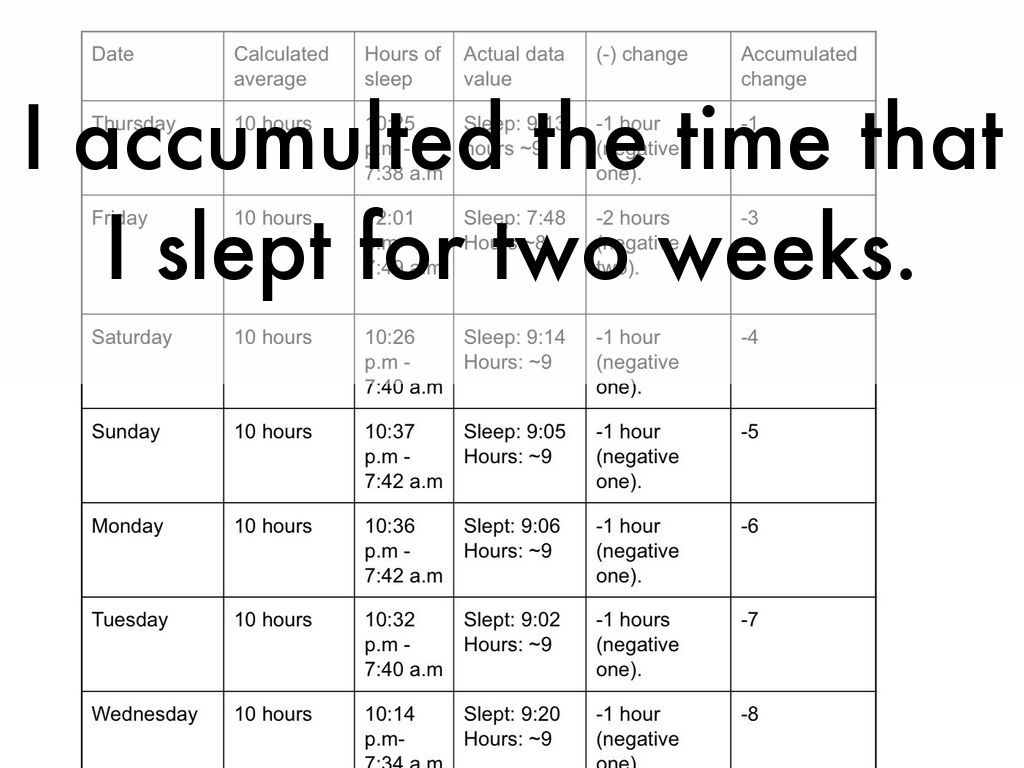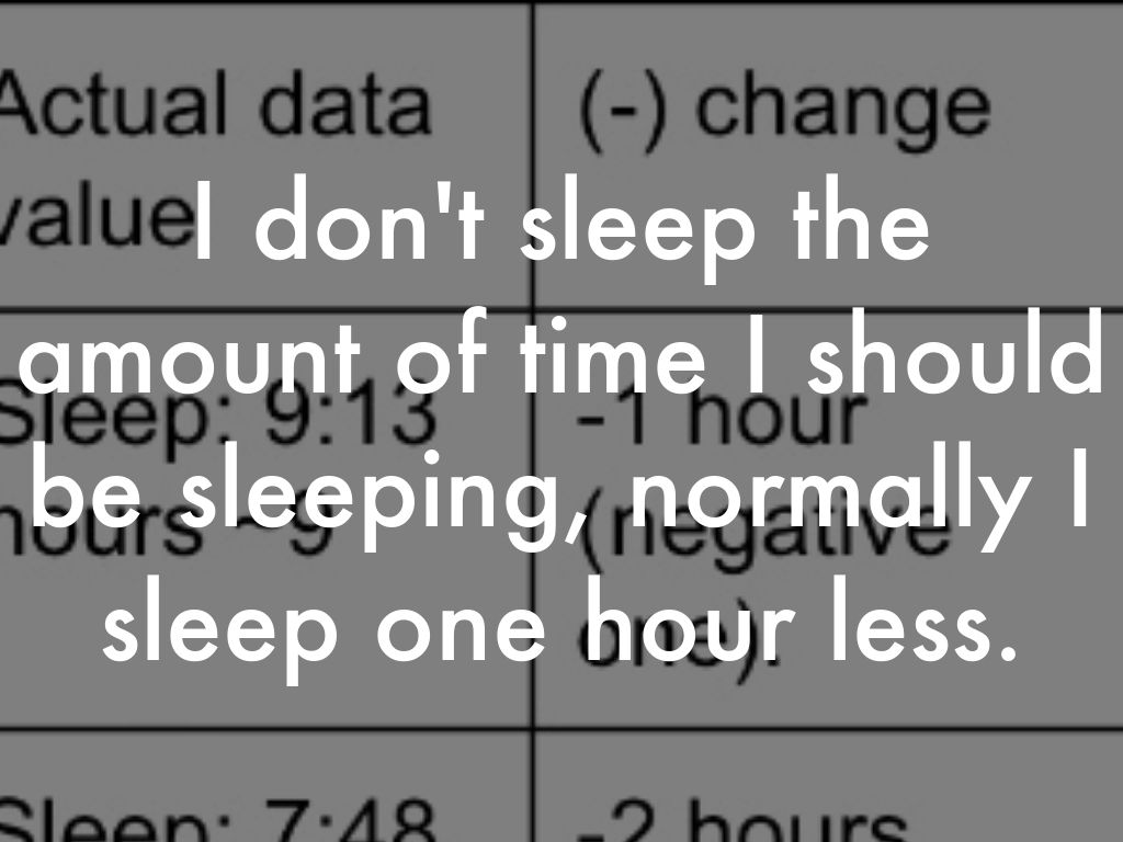 I don't sleep the amount of time I should be sleeping, normally I sleep one hour less.