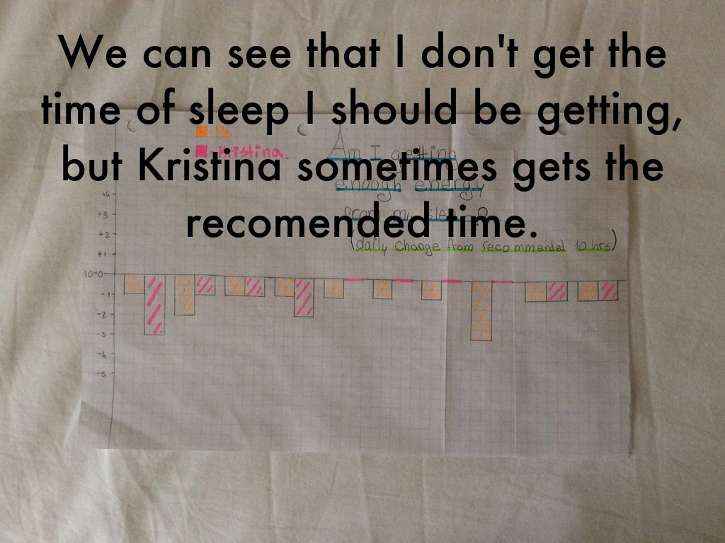 We can see that I don't get the time of sleep I should be getting, but Kristina sometimes gets the recomended time.