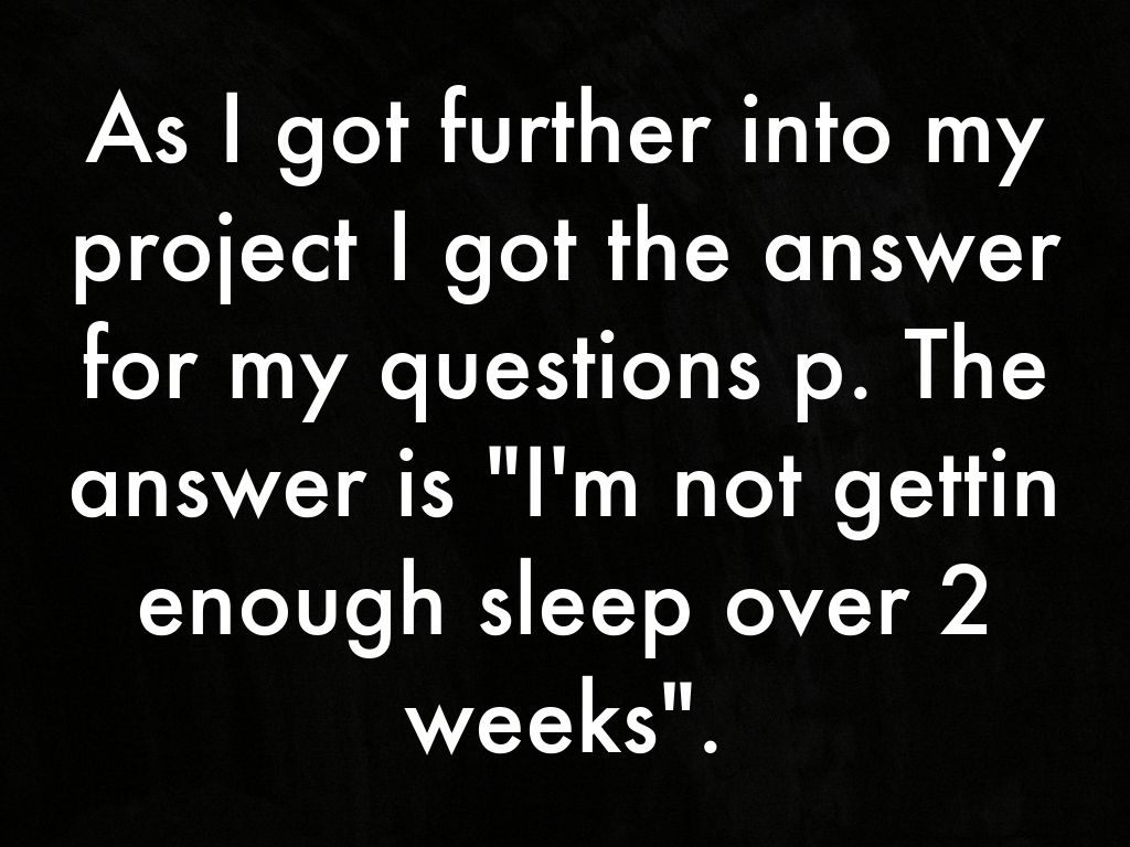 As I got further into my project I got the answer for my questions p. The answer is "I'm not gettin enough sleep over 2 weeks".