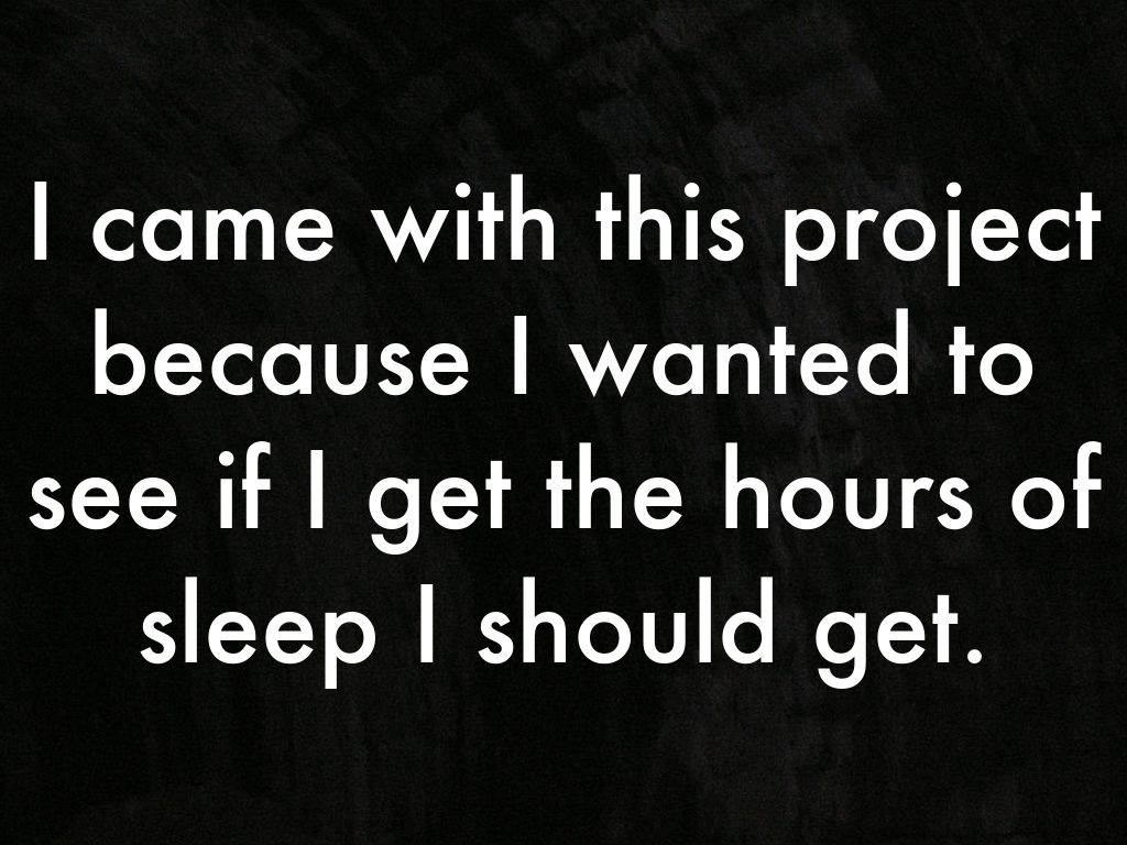 I came with this project because I wanted to see if I get the hours of sleep I should get.