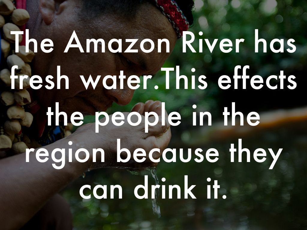 The Amazon River has fresh water.This effects the people in the region because they can drink it.