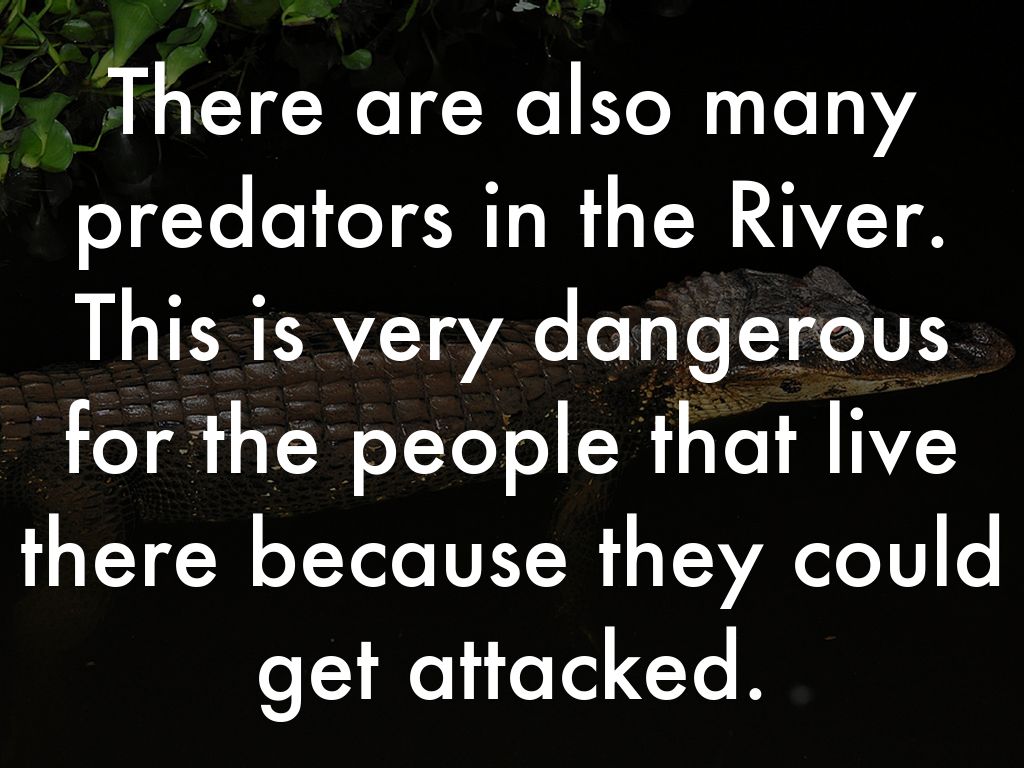 There are also many predators in the River. This is very dangerous for the people that live there because they could get attacked.