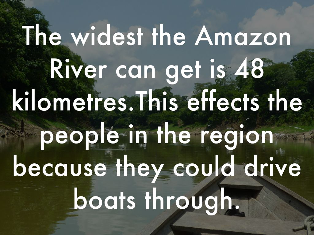 The widest the Amazon River can get is 48 kilometres.This effects the people in the region because they could drive boats through.