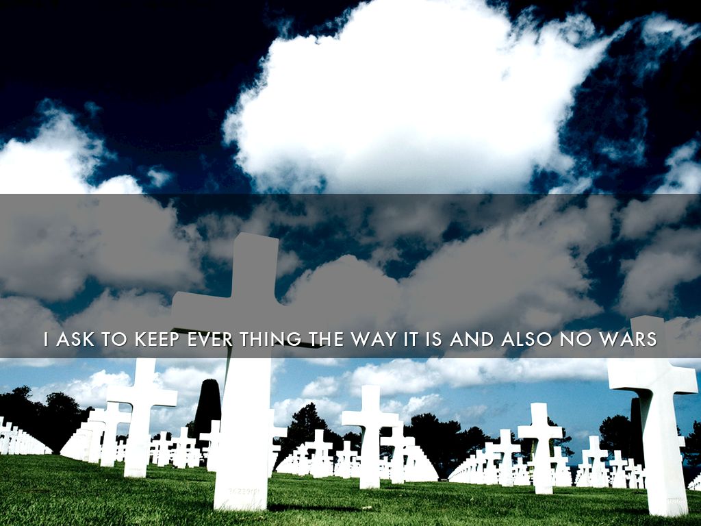 I ASK TO KEEP EVER THING THE WAY IT IS AND ALSO NO WARS