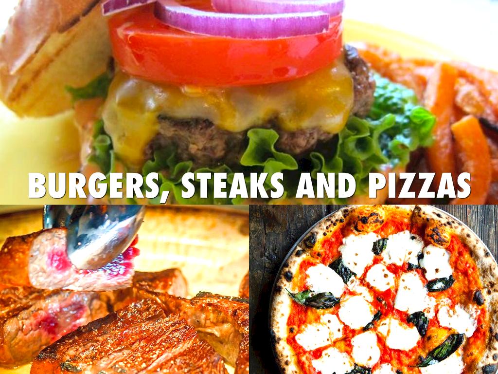 BURGERS, STEAKS AND PIZZAS