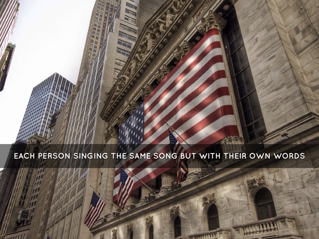 EACH PERSON SINGING THE SAME SONG BUT WITH THEIR OWN WORDS