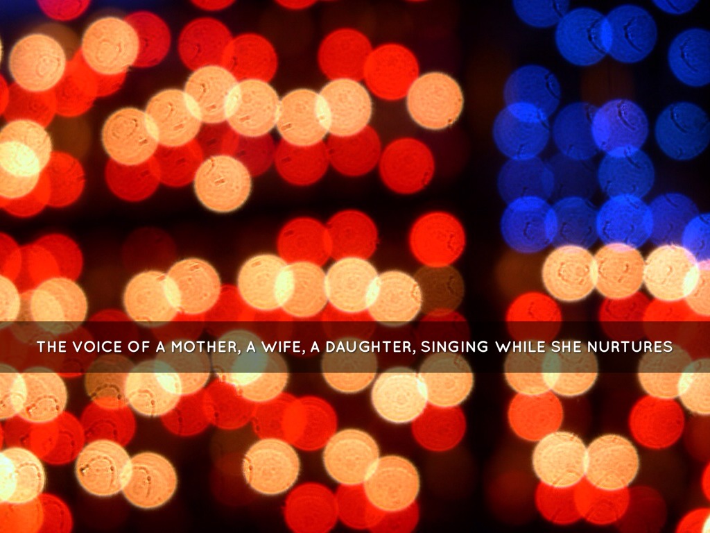 THE VOICE OF A MOTHER, A WIFE, A DAUGHTER, SINGING WHILE SHE NURTURES