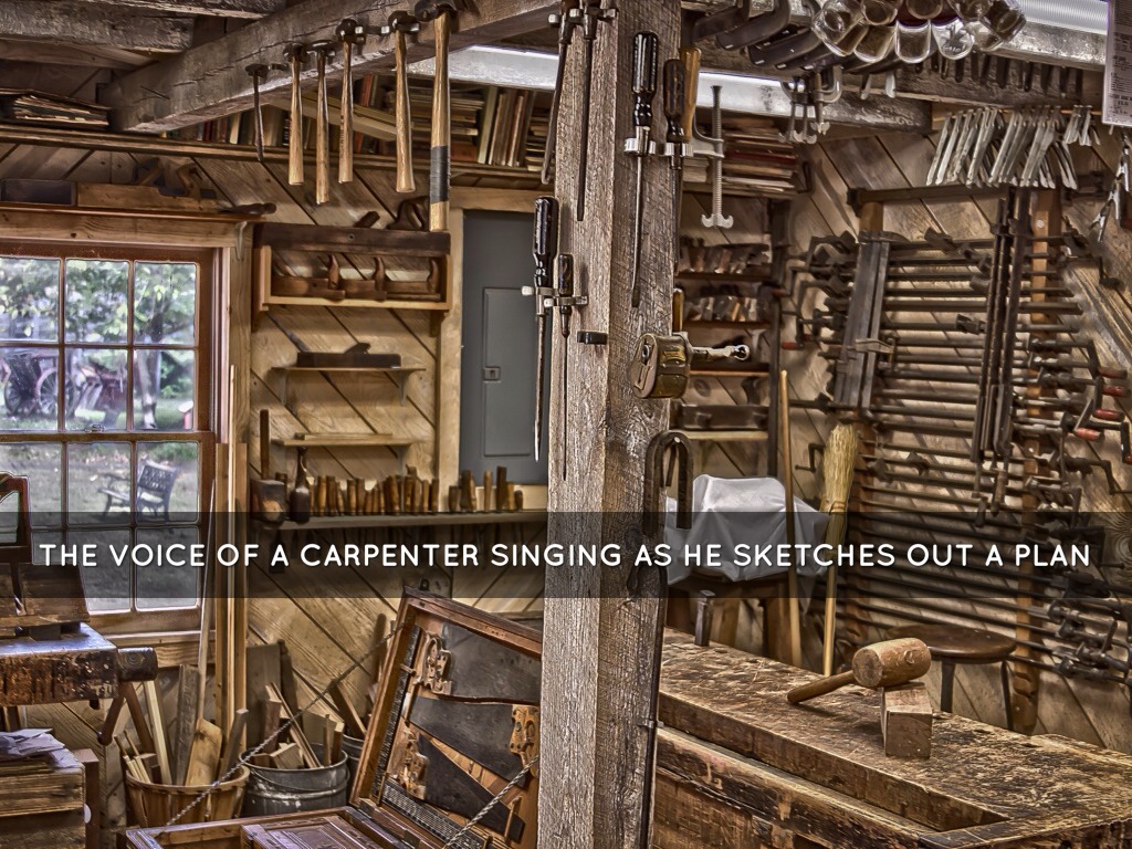 THE VOICE OF A CARPENTER SINGING AS HE SKETCHES OUT A PLAN