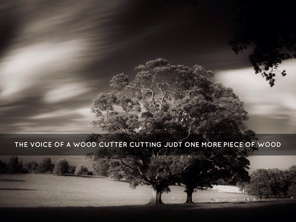 THE VOICE OF A WOOD CUTTER CUTTING JUDT ONE MORE PIECE OF WOOD