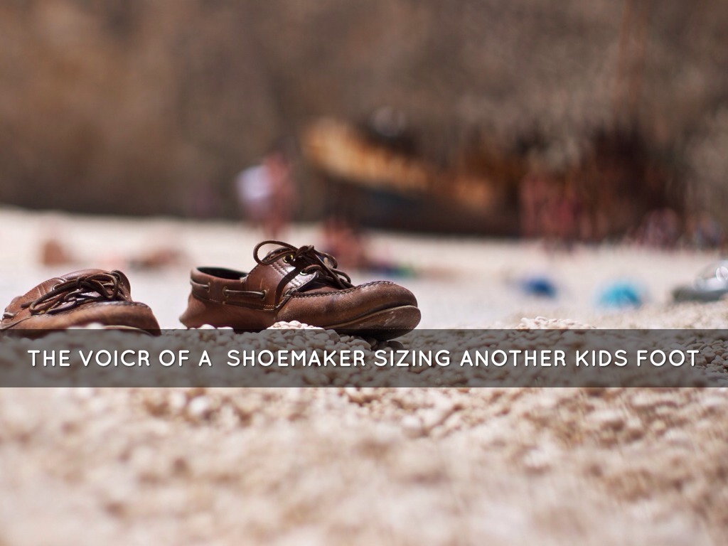 THE VOICR OF A SHOEMAKER SIZING ANOTHER KIDS FOOT