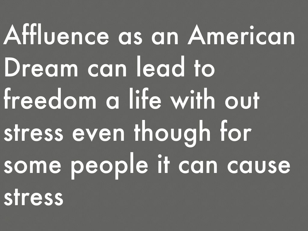 Affluence as an American Dream can lead to freedom a life with out stress even though for some people it can cause stress