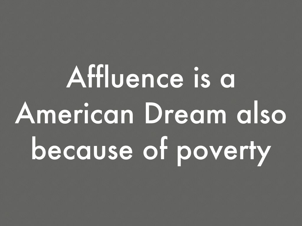 Why is affluence the American Dream? Is to be successful in life with a great deal of money