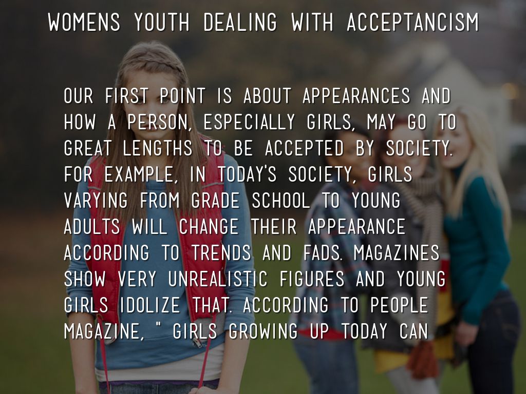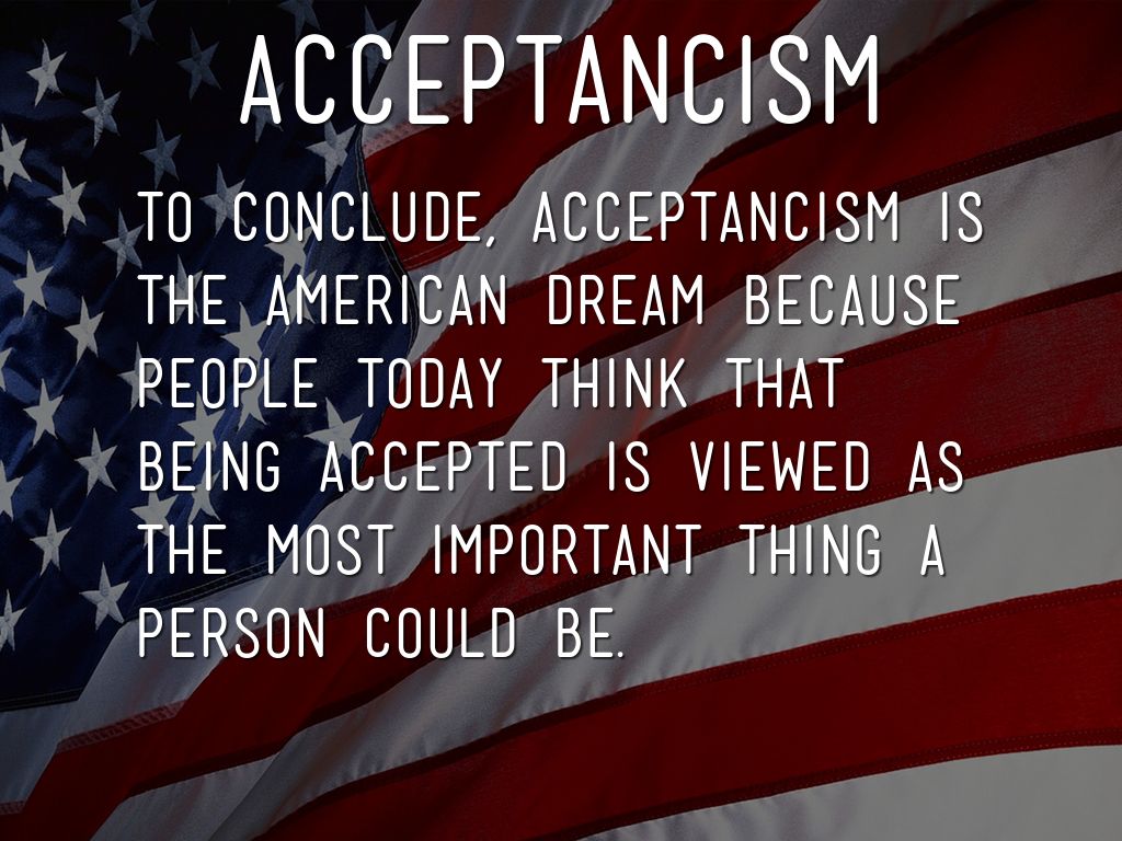 To conclude, acceptancism is the American Dream because people today think that being accepted is viewed as the most important thing a person could be.