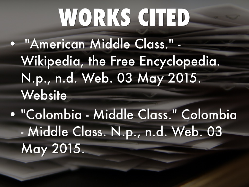 "American Middle Class." - Wikipedia, the Free Encyclopedia. N.p., n.d. Web. 03 May 2015. Website