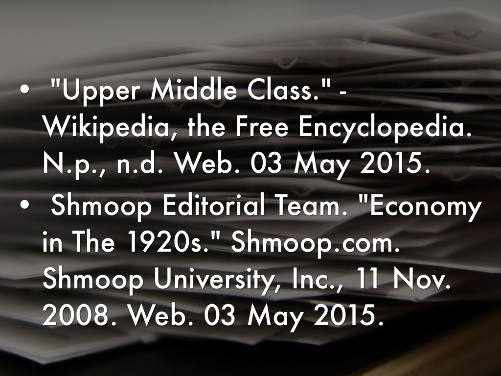 "Upper Middle Class." - Wikipedia, the Free Encyclopedia. N.p., n.d. Web. 03 May 2015.