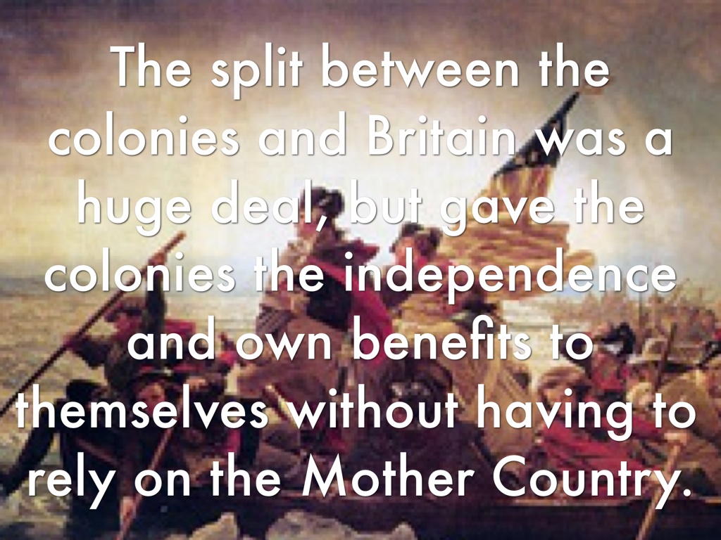 The split between the colonies and Britain was a huge deal, but gave the colonies the independence and own benefits to themselves without having to rely on the Mother Country.