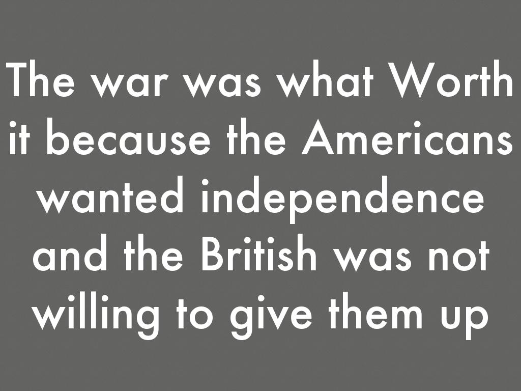 The war was what Worth it because the Americans wanted independence and the British was not willing to give them up