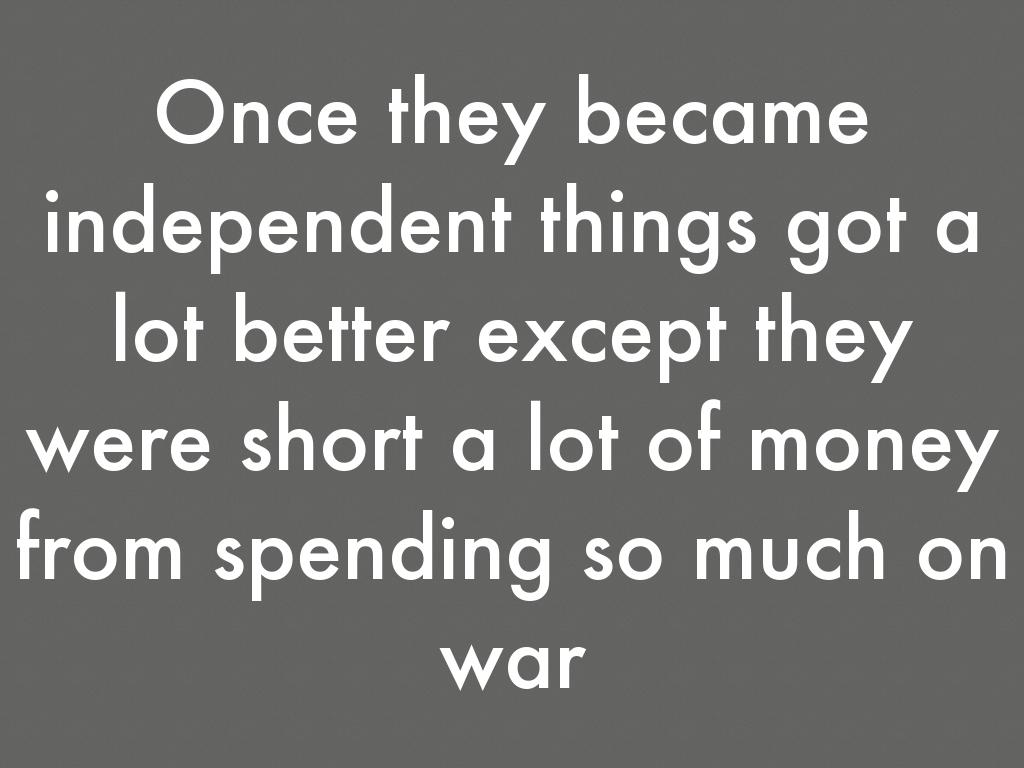 Once they became independent things got a lot better except they were short a lot of money from spending so much on war