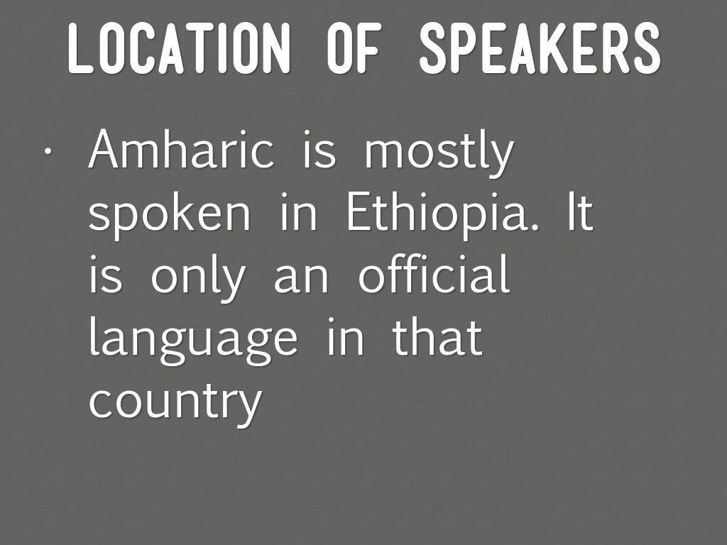 Amharic is mostly spoken in Ethiopia. It is only an official language in that country