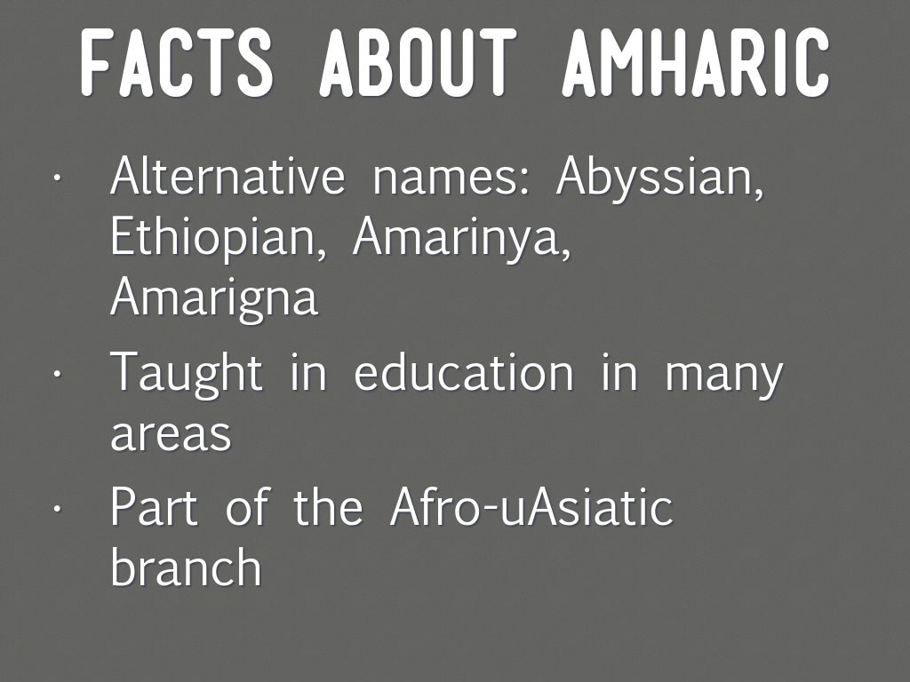 Alternative names: Abyssian, Ethiopian, Amarinya, Amarigna