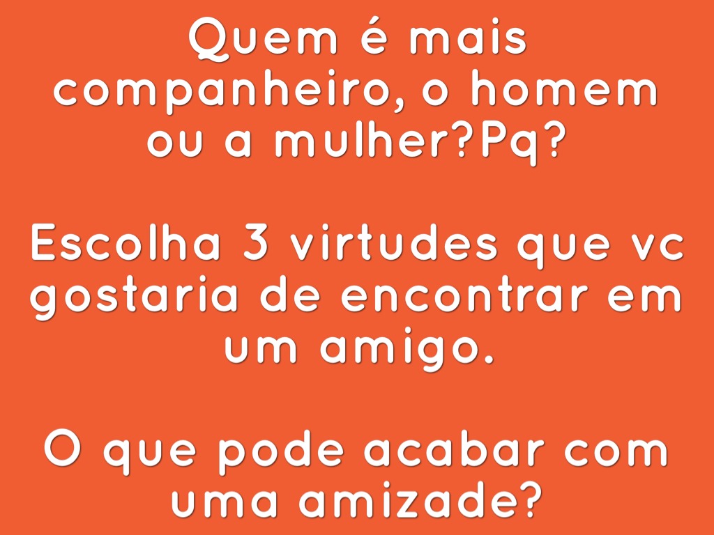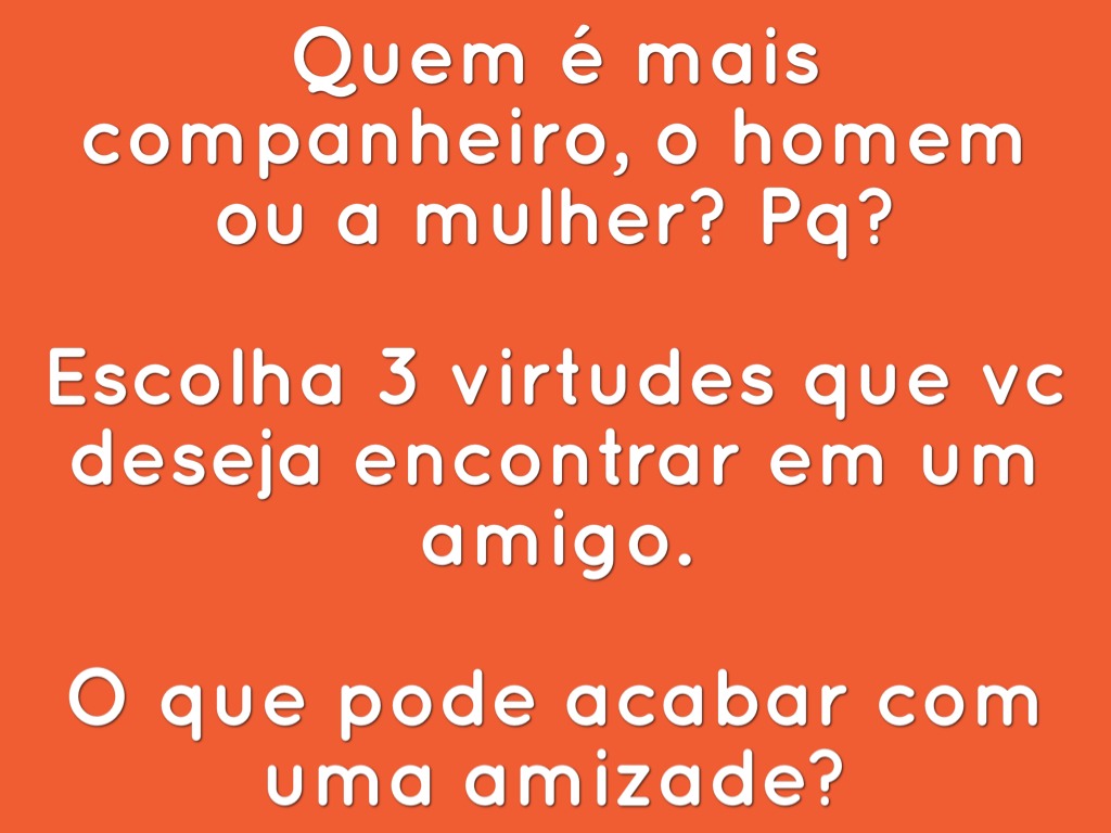 Escolha 3 virtudes que vc deseja encontrar em um amigo.