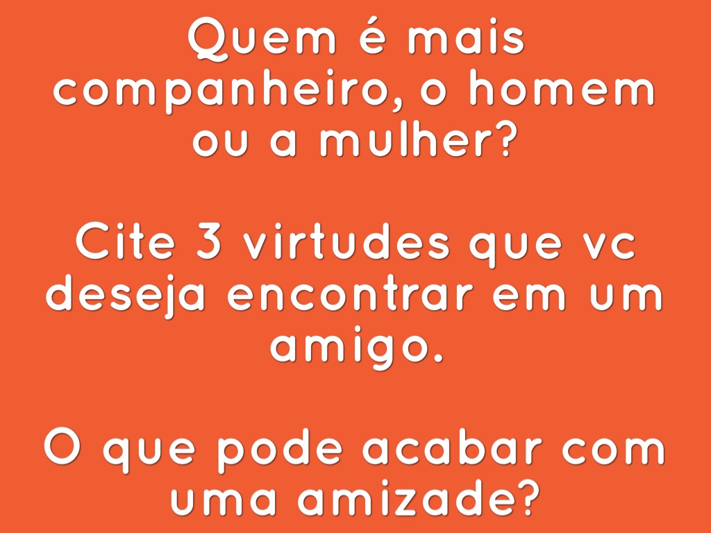 Cite 3 virtudes que vc deseja encontrar em um amigo.
